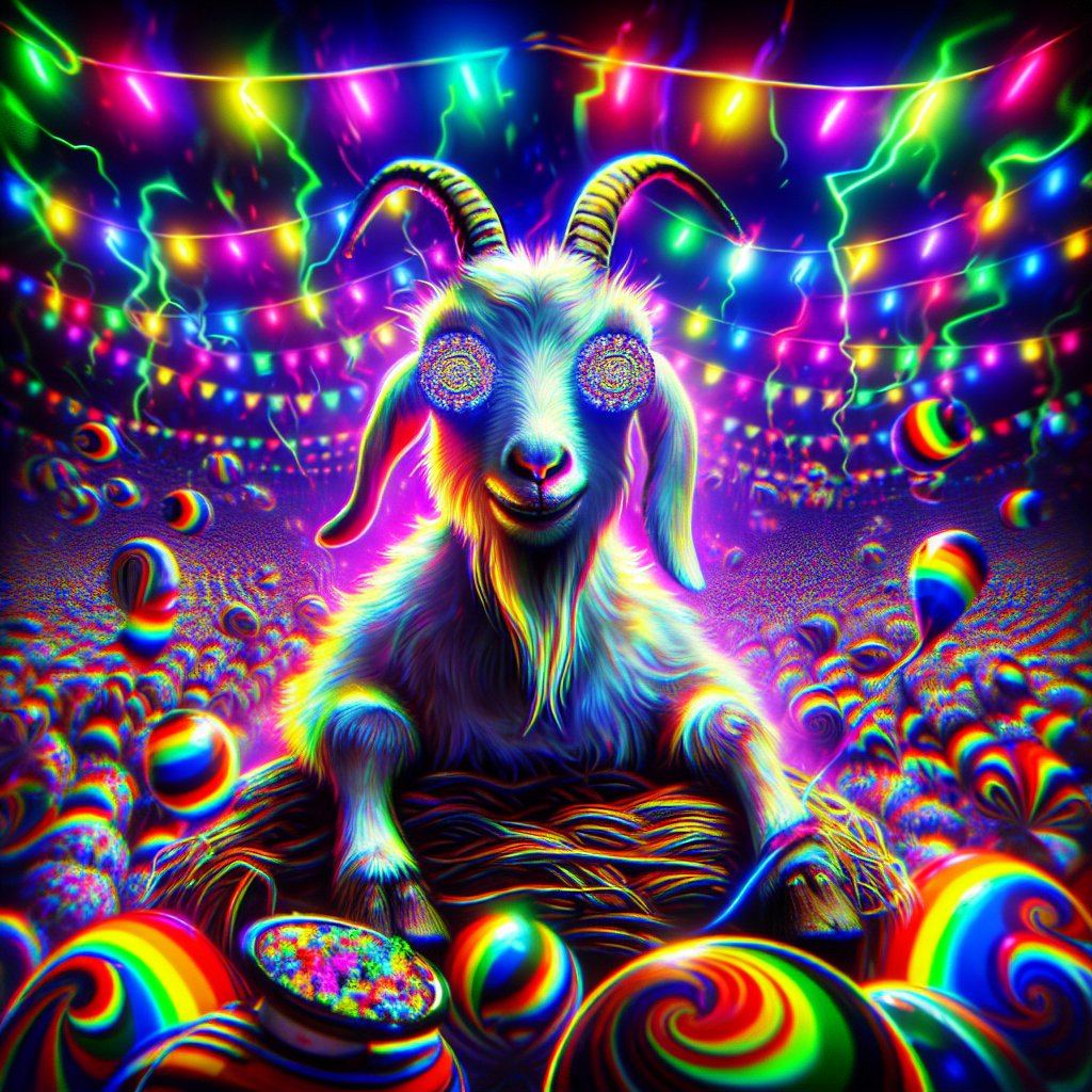 lights flashing like they’re having an existential crisis and a goat preaching $gfr like it’s gospel